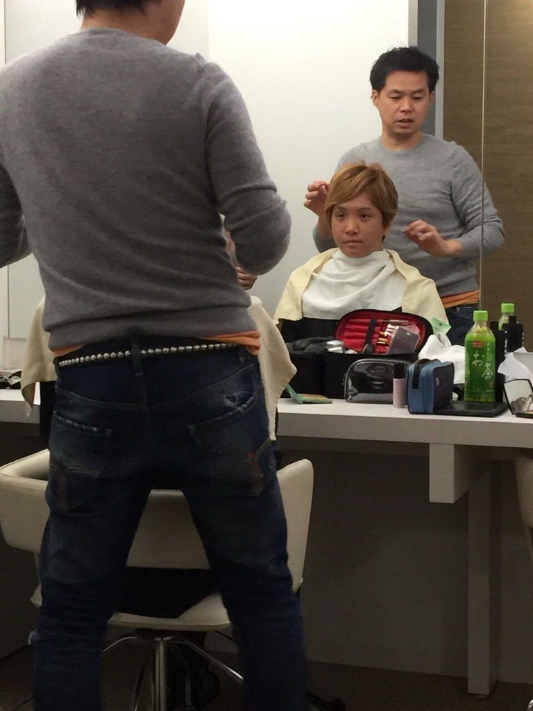 メイク室で、なぜか、僕は、左に小杉さん、右に吉田さんって感じで、