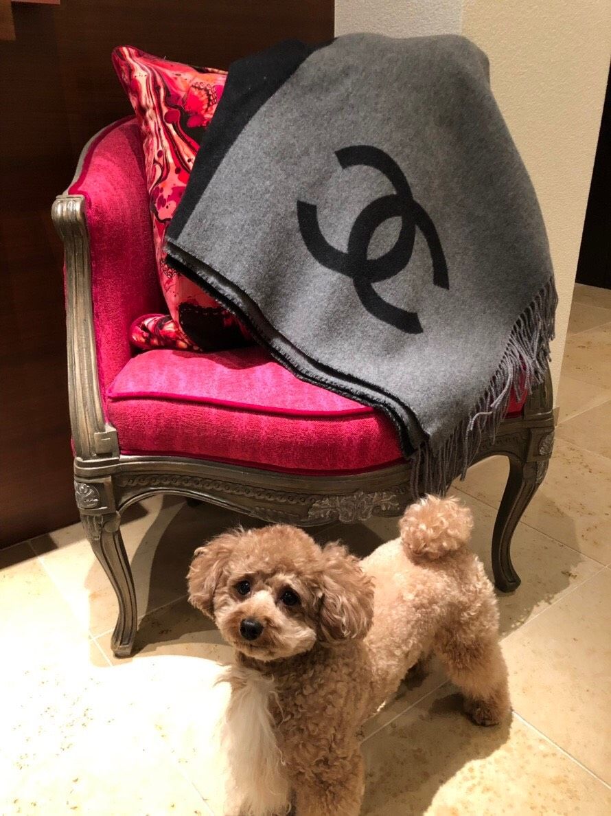 2018年のご愛顧に感謝して、ということで、シャネルからブランケットを頂きました! 非売品の特製品ですが、普通に買えば何十万円はするはず!? キスショットがかじらないように気をつけないと、、(笑)