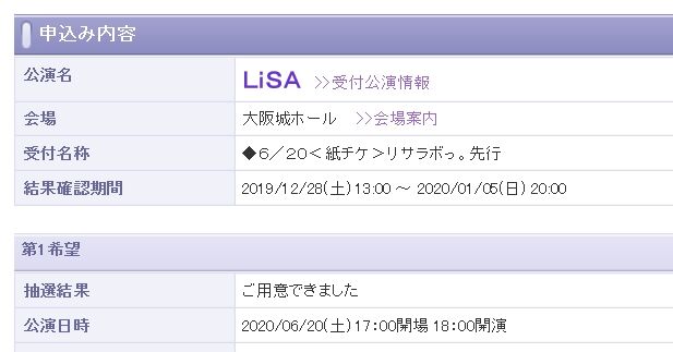 LiSAさんのアリーナツアーのチケット当選しました(^^)/