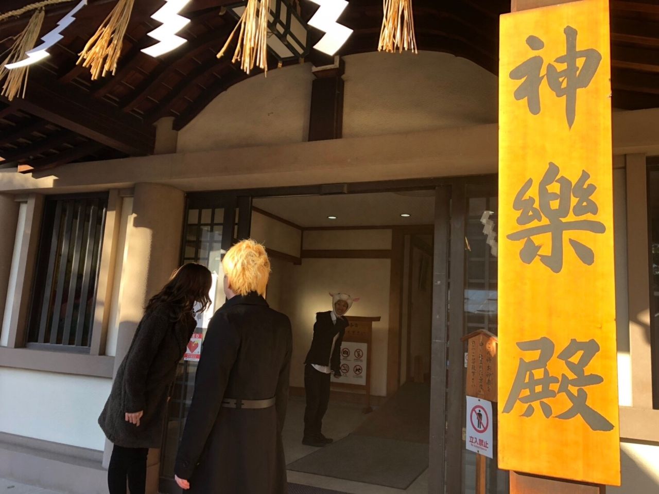 初の外ロケとなった、「大阪の住吉大社に、日頃の感謝とヒット祈願に神社参拝とご祈祷に行ってきました!」の撮影風景 スタッフさん含めて7名で、住吉の神様にお礼と芸能上達を祈ってきました(^^)/