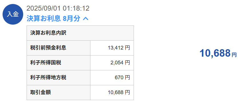 PayPay銀行の普通預金(個人)に預けている預金の利息です